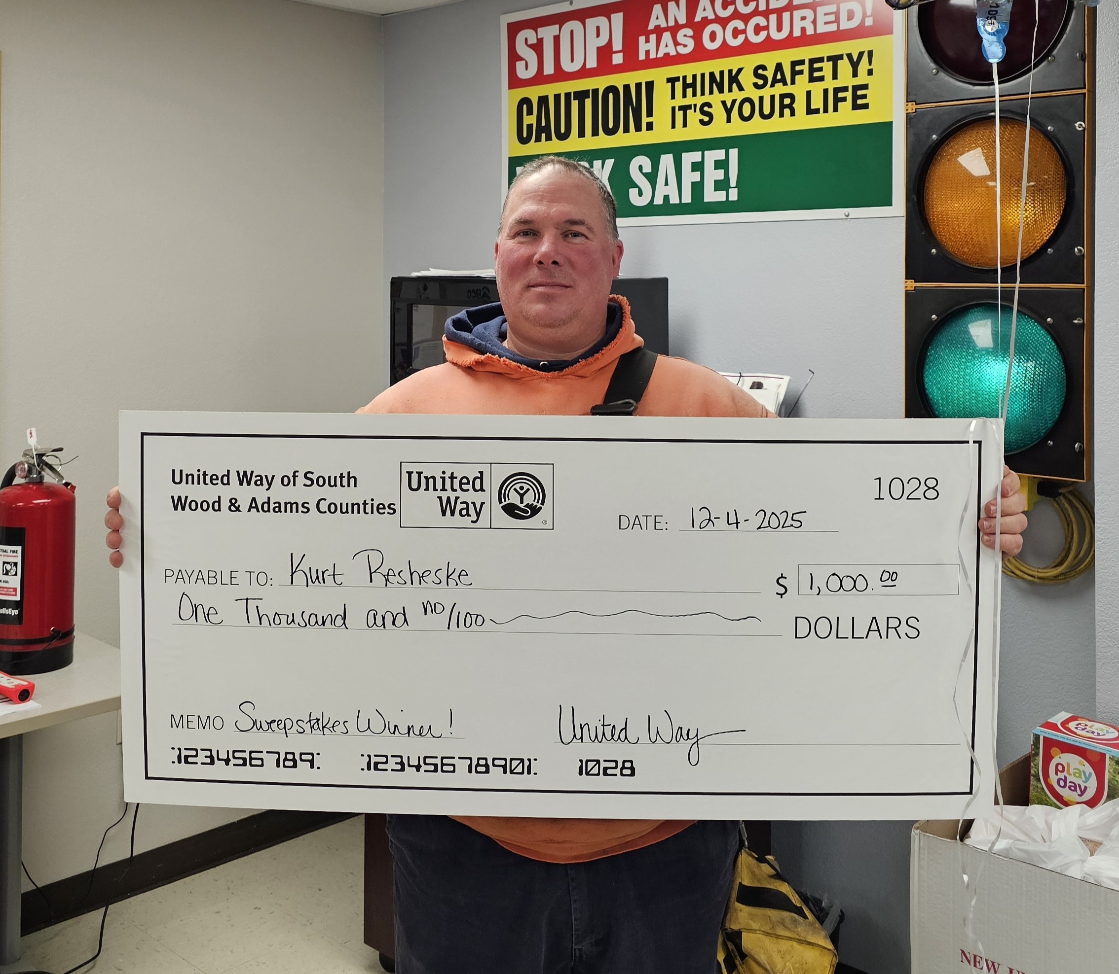 The $1,000 Sweepstakes are made possible by our generous sponsors: Aspirus Health, Emplify Health by Gundersen, NextHome Partners, Prevail Bank, and Williams Plumbing & Heating. We also would like to thank Smurfit Westrock for providing the big sweepstakes checks that each winner got to keep. Thank you again to ALL our donors for making our 2025 Sweepstakes a success!