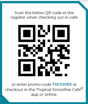 - Place an order online through the Tropical Smoothie Cafe app or online and use promo code TSCGIVES at checkout.
