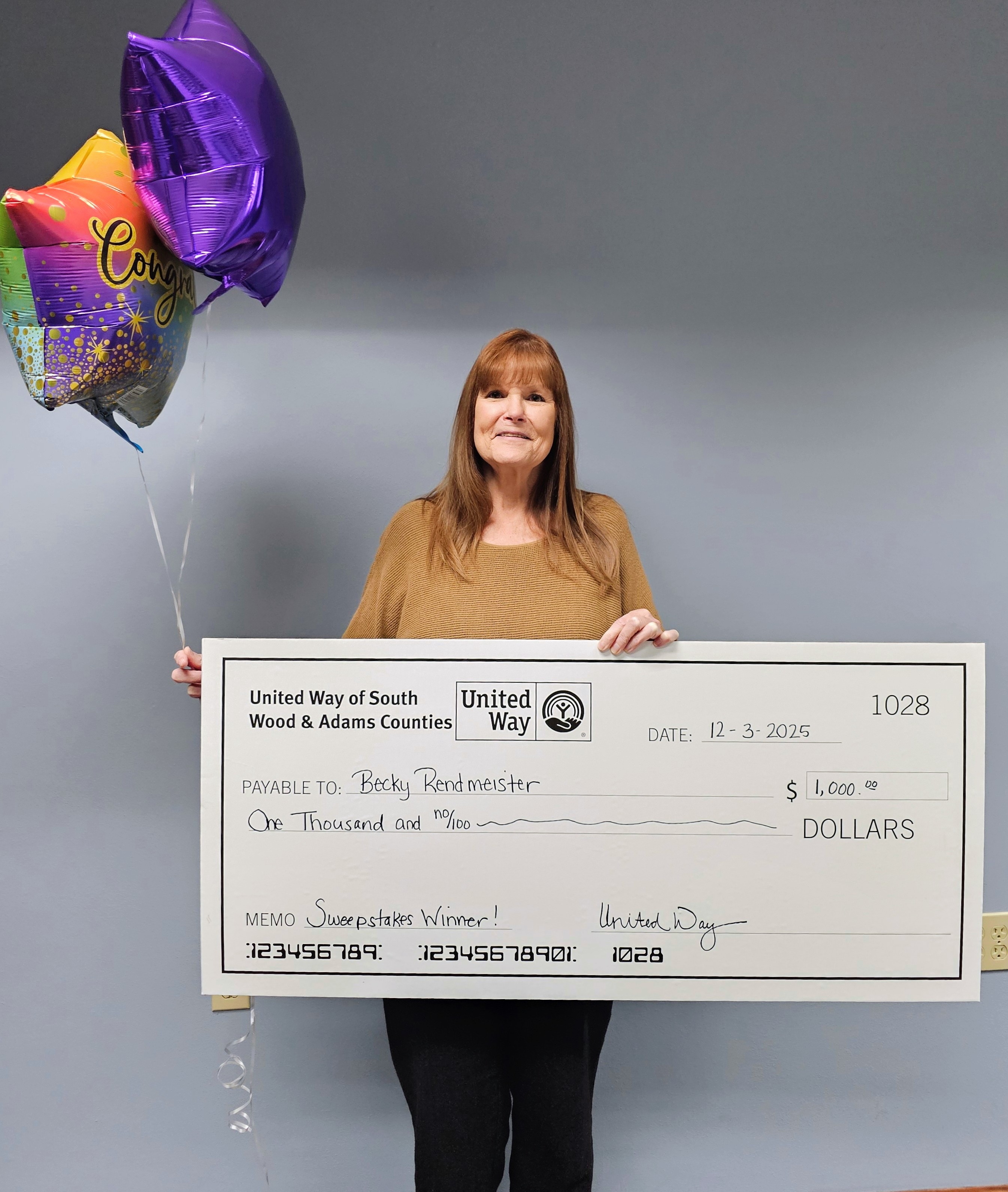 WISCONSIN RAPIDS, WI- This year for the $1,000 Sweepstakes, every donor who gave $1.00 per week (equal to $52 per year) during the United Way of South Wood & Adams Counties campaign received 50 chances to win. Donors who increased their prior gift of $52.00 or more by $26.00 or more doubled their chances to 100 chances to win!